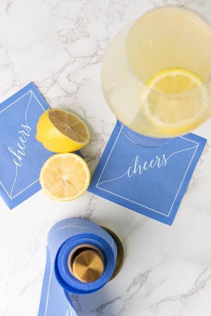 This roll of 50 premium cotton cocktail napkins features elegant white "Cheers" text on a soft, dreamy summer-inspired background. They're soft, absorbent, and reusable—because real entertaining deserves real linens. Whether you're hosting a summer soirée, celebrating a milestone, or just making Tuesday night feel special, these napkins add a touch of luxury without the fuss.