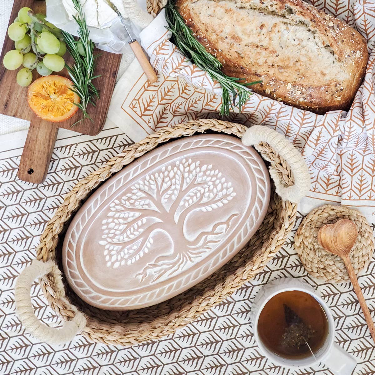 Handmade Bread Warmer & Wicker Basket - Tree of Life Oval
