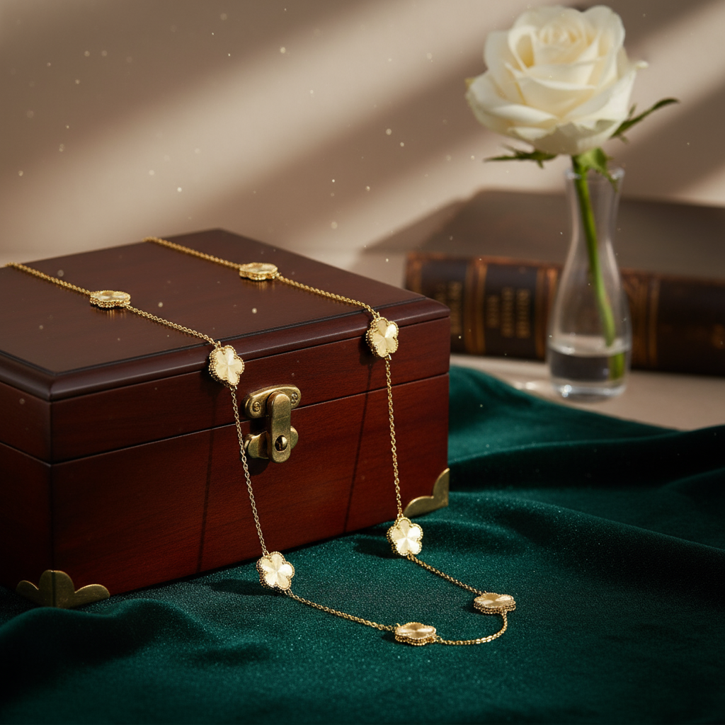 This mother of Pearl Adeline Clover Necklace is crafted with Mother of Pearl to create an exquisite and shimmering accessory. The pearly finish and unique clover shape make it a timeless piece that you can take from day to night with ease!