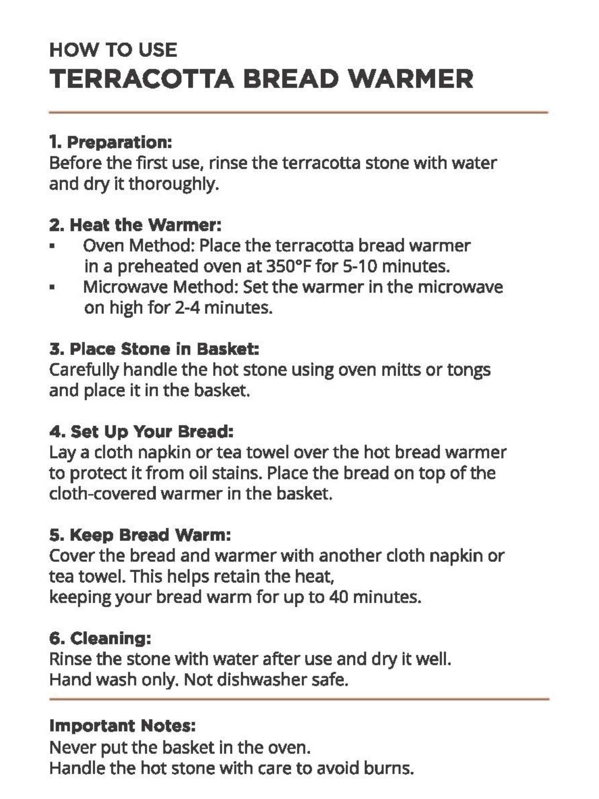 Keep your bread and tortillas warm and fresh throughout the meal. This terracotta warming stone is naturally insulating, and woven basket has been handwoven from sustainably grown seagrass. The best gift for bread lovers! Size: Approximately * (Bread Warmer) 0.5"tall x 9”round * (Basket) 3.25"tall x 11"round - Material: * (Bread Warmer) 100% Terra Cotta * (Basket) 100% Seagrass and Jute wool - Color: Natural - Due to the handcrafted nature, slight variation will occur in design, color, and size. [How to Care for This Item] - Bread warmer: Wipe stone clean with a damp cloth. Dry well. Not dishwasher safe. - Basket: Dust or vacuum your basket on a regular basis, wiping with a damp cloth if necessary. Do not rub stains or spills from your basket, as this may spread the stain and loosen the natural fibers. - Whitewash can be removed with pressure water, or by hand. - Do not put the basket in the oven.